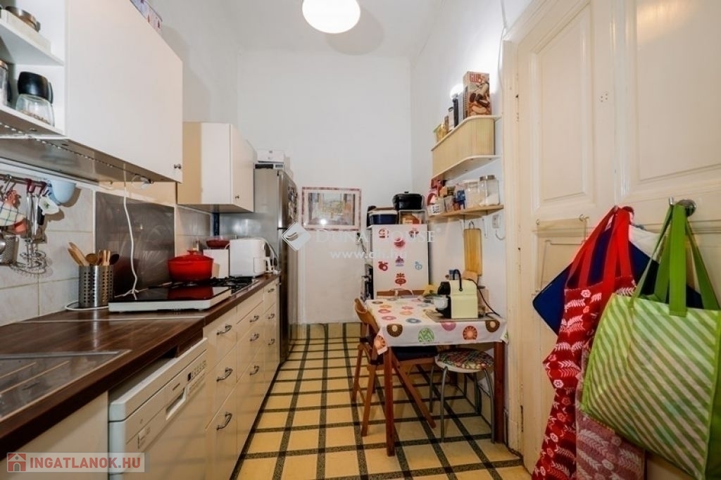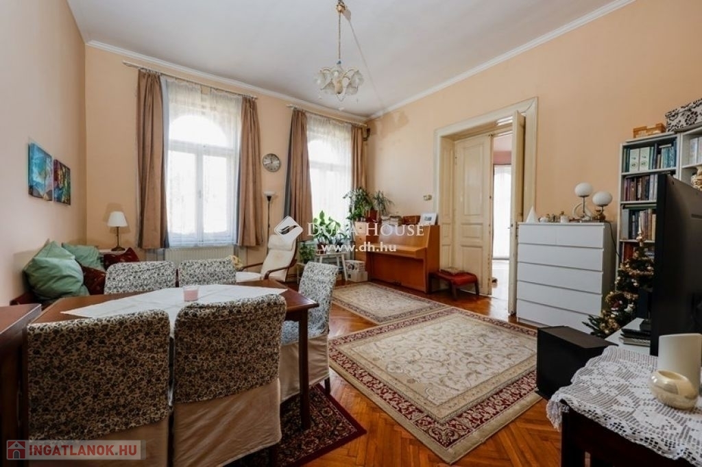 Near Városliget, Keleti, a 99 m2 corner apartment with a balcony and a city panorama. We offer for sale a 99 m2 apartment, currently with 4 rooms and a 3 m2 balcony, on the 3rd floor of a patina bourgeois house in the 7th district. The apartment is well-arranged and divided, the rooms are street-oriented, east and south-facing, bright, sunny, and a beautiful city panorama opens up from the balcony. We enter the apartment from the closed staircase into the spacious hall, where on the left we find the 9 m2 kitchen-dining room with a built-in kitchen counter and gas hob, its window overlooking the inner courtyard. The hall also opens to the toilet, a small pantry, the bathroom with a bathtub and the 27 m2, east-facing living room. From the living room we can reach the corner room with a balcony. On the property sheet, the third, south-facing street room of a 3-room apartment is currently divided into two 12 m2 rooms, which can be accessed separately from the bathroom, and one of them also has a smaller gallery. The apartment has a gas boiler for heating and hot water in the bathroom, the windows of the south-facing rooms have been replaced with plastic windows and doors. All consumption in the apartment is measured with an individual meter. The apartment is located on the 3rd floor of the condominium, there is no elevator. The common cost is 29,890 HUF/month, of which the roof, chimneys, and gas main have been renewed in the house in recent years, among other things. It is in an excellent location in terms of public transportation, shopping, and amenities. Garay Center, Városliget, Keleti, metros, buses, trolleys, schools, kindergartens, doctors' offices, and pharmacies are within a few minutes' drive. If you are interested in the property, please call us! Reference number: LK097706-NOK