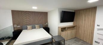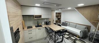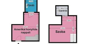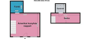 Az egyik lakás egy kisebb alapterületű, kompakt, de minden igényt kielégítő otthon: az alsó szint 18 nm, a galériával együtt 35 nm. Ideális lehet rövid távú kiadásra, fiatal pároknak vagy akár irodai használatra is. Teljeskörű felújításon esett át, modern burkolatokkal, beépített bútorokkal és gépesített konyhával, így azonnal költözhető vagy hasznosítható.