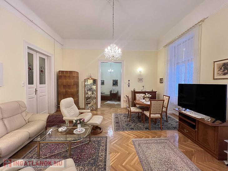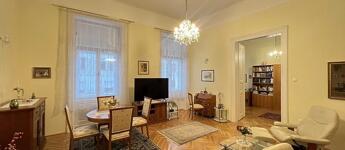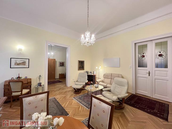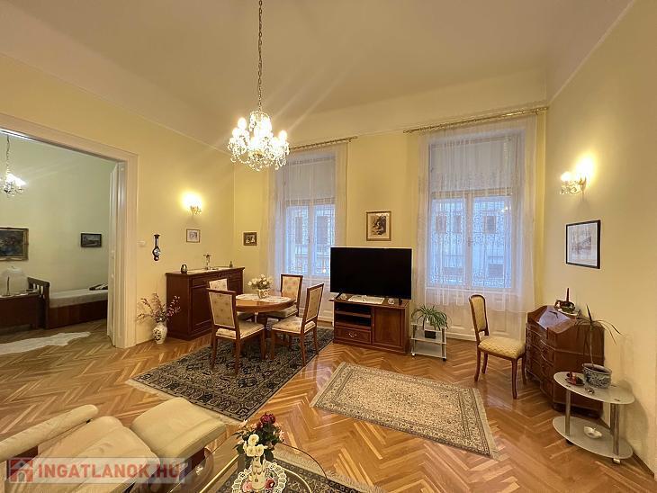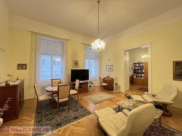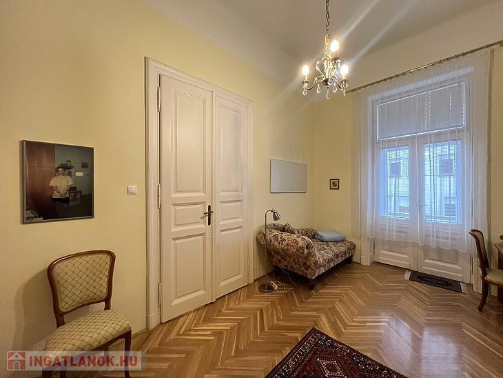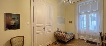 Eladó a 7. kerületben, a Vörösmarty utcában egy 88 m2-es, 3 m2-es erkéllyel rendelkező, utcai nézetű, igényesen felújított nagypolgári lakás.