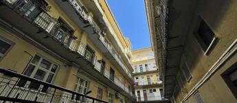 Az ablak a csendes belső udvarra néz, így kellemes, nyugodt otthon alakítható ki belőle.