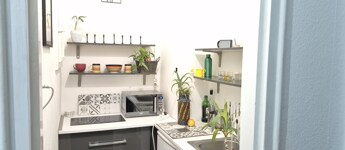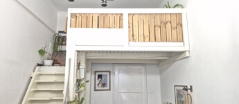 A 390 cm-es belmagasság rendkívüli térérzetet biztosít, amelynek köszönhetően egy kényelmes, 6 m²-es galéria került kialakításra franciaággyal. A galéria alatti rész praktikus élettér, a lépcső alatt pedig rejtett tároló kapott helyet.