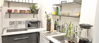 Az előszobából nyílik: – a jól szervezett, praktikus konyha, egyedileg gyártott indukciós főzőlappal