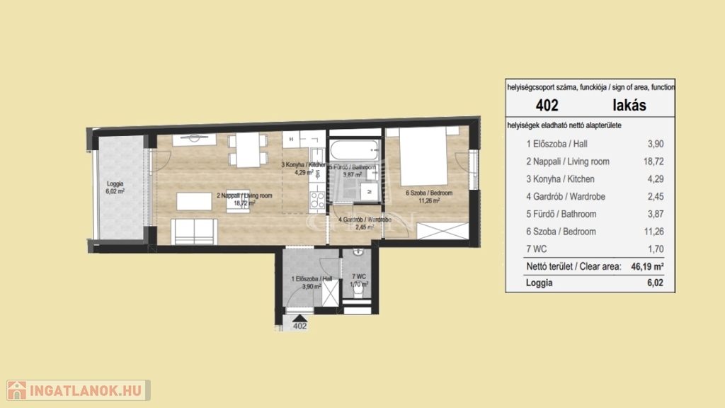A megadott alapterület kizárólag a lakás alapterületére értendő, nem tartozik bele a terasz, a terasz fele, vagy a saját kertrész!