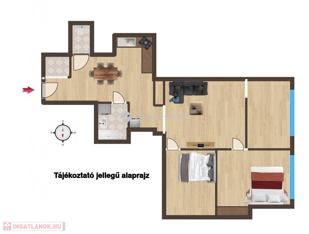 - 61 négyzetméter plusz két tárolásra alkalmas, praktikus galéria