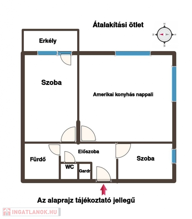 Az ingatlan jelenlegi elosztása: nappali + 1 hálószoba, de kis átalakítással nappali + 2 hálós otthonná alakítható, így ideális lehet kisebb családnak vagy akár befektetésnek is.