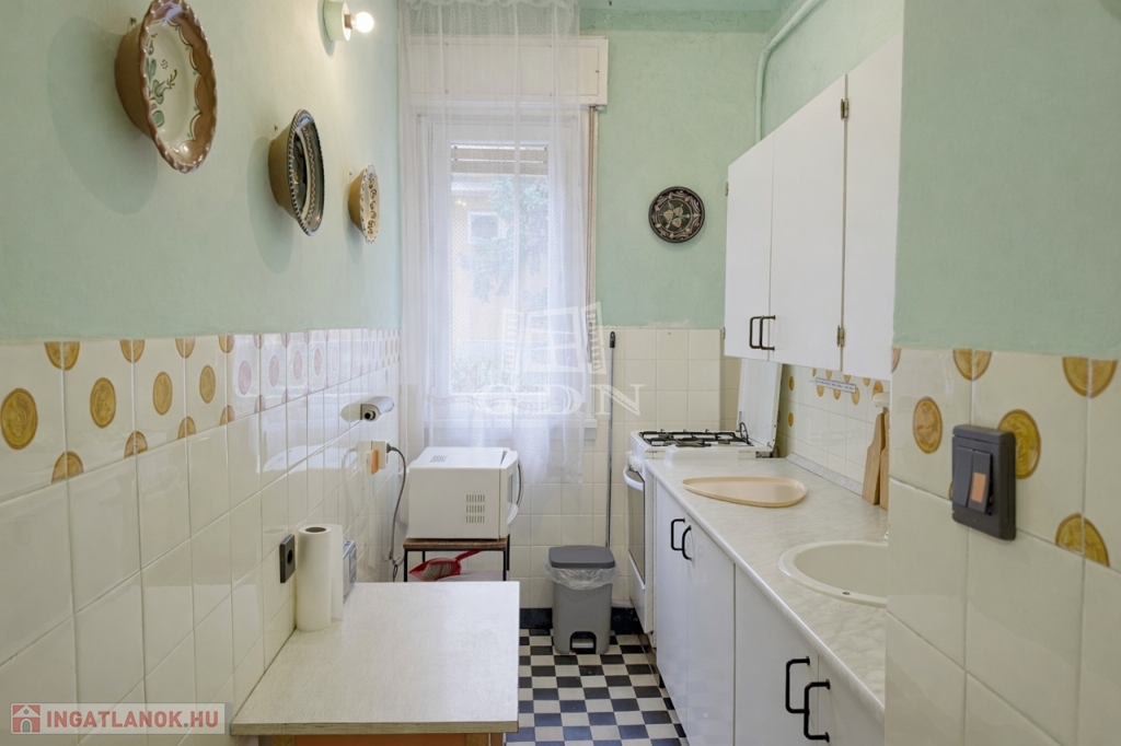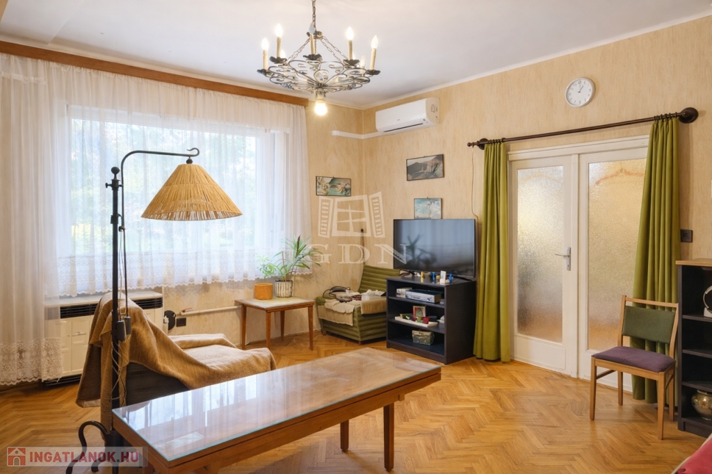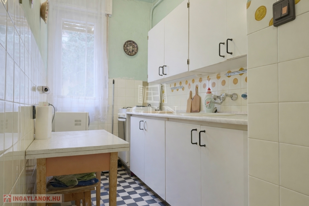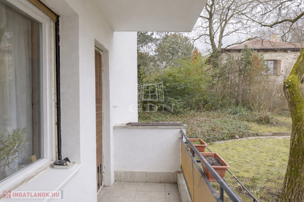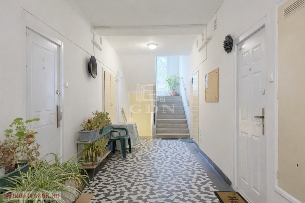 A Budagyöngyétől néhány perc sétára, csendes mellékutcában található ez a 67 m²-es, földszinti lakás egy 11 lakásos társasházban.