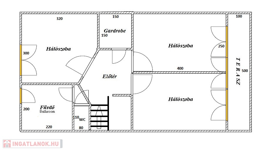 Mindenhol fa nyílászáró van, 2 rétegűek, a nappali tolóajtója pedig 3 rétegű üvegből készült. Mindegyik szúnyoghálós, es elektromos redőnyökkel ellátott.