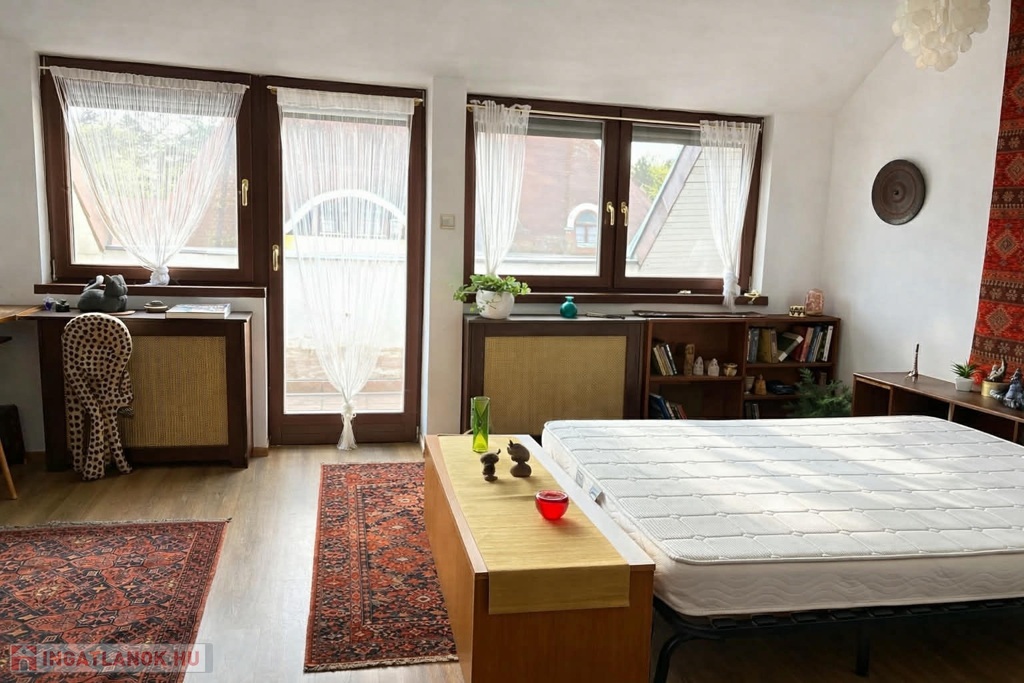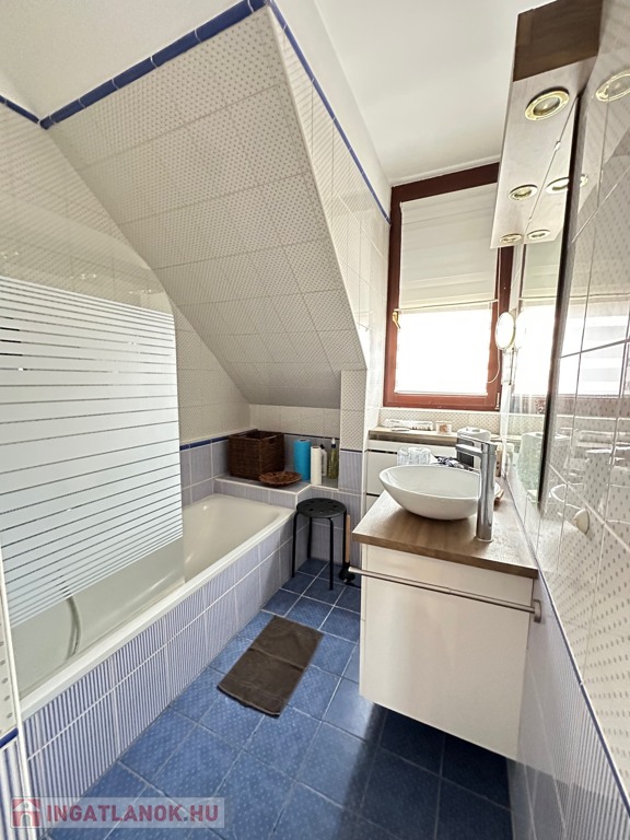 Tartozik hozzá a padlástérből a felette lévő rész, illetve egy 30 négyzetméteres garázs, elektromos kapunyitóval.