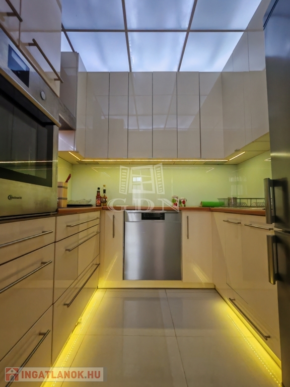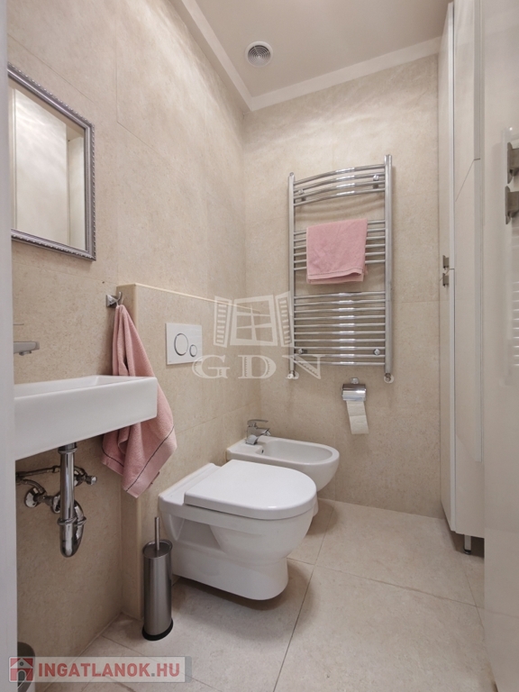 Exkluzív és biztonságos környezet: Az 5. emeleten mindössze két lakás található, a lift pedig csak kulccsal használható, így a privát szféra teljesen biztosított. A lakás távfelügyeletre kötött riasztó rendszerrel rendelkezik.