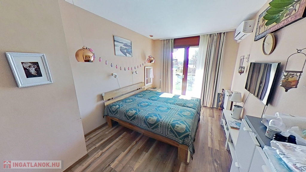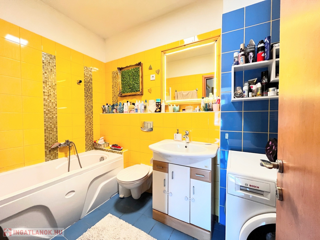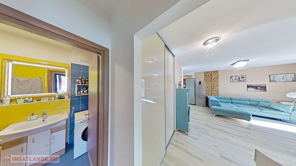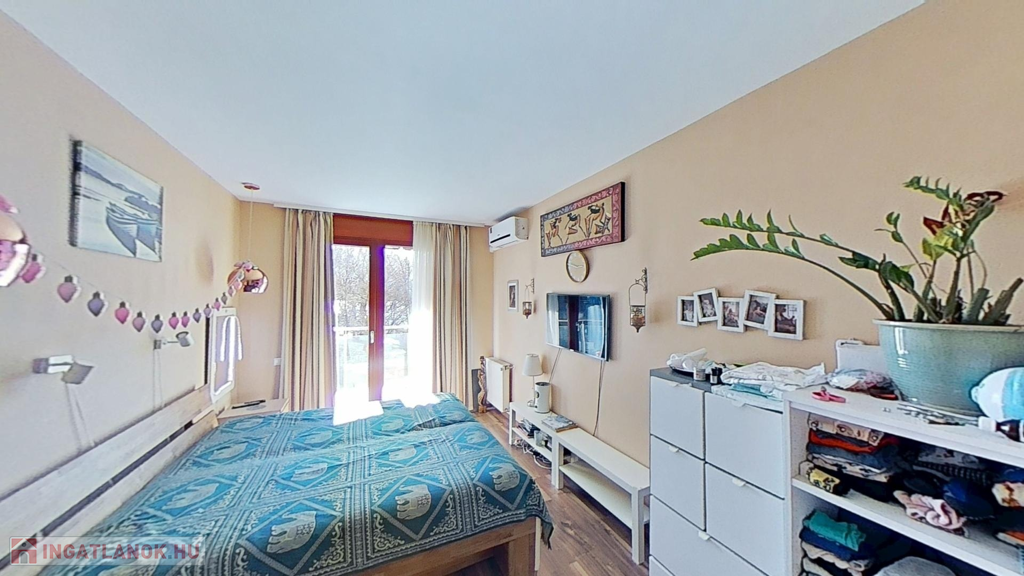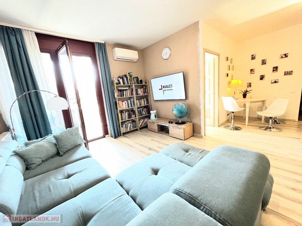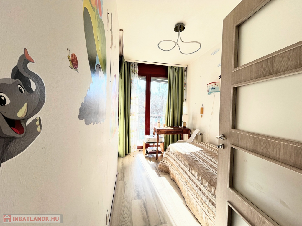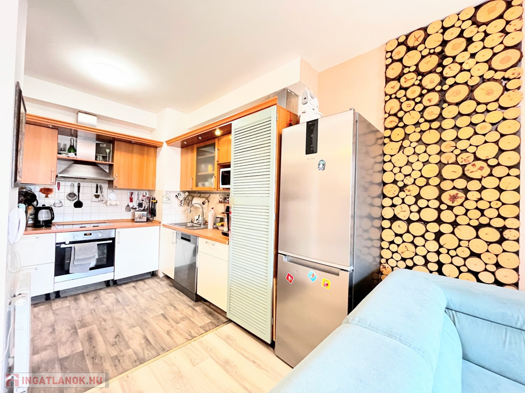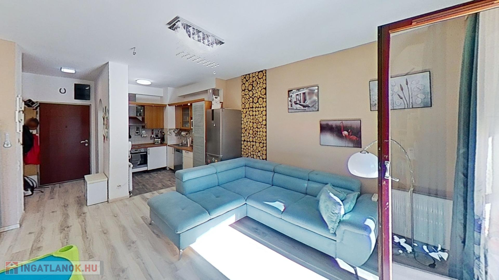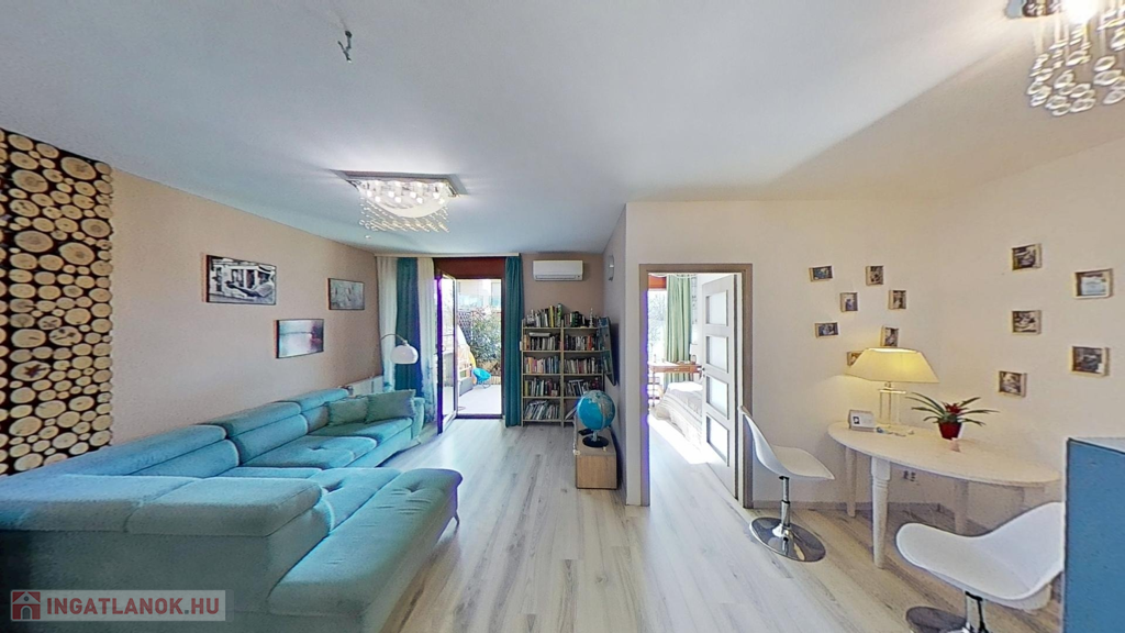 A lakásban a nagy, amerikai konyhás nappalin kívül két hálószoba várja az új tulajdonost. A kisebb háló utólag, a nappali területéből leválasztva lett kialakítva, így lehetőség van annak visszabontására, amivel a nappali még impozánsabb, világosabb lesz.