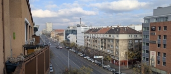 A lakás a társasház legfelső emeletén található, ennek köszönhetően világos. Az erkélyes szoba a Váci útra néz, a szembelévő szoba pedig a Budai hegyekre.