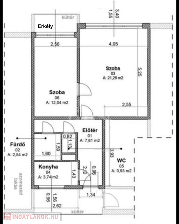 Üde színfoltja az ingatlannak a 3 négyzetméteres erkély, ahonnan az utcai kilátás tárul részünkre.
