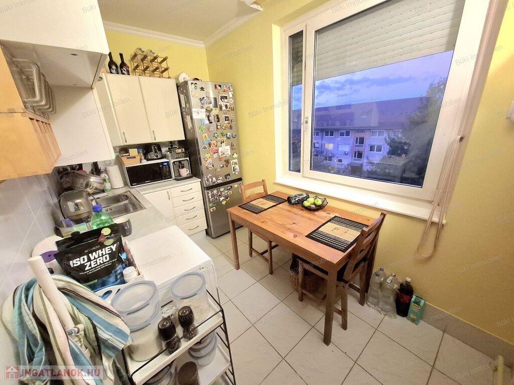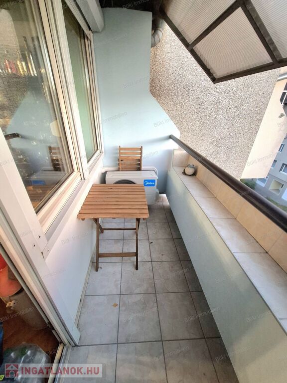 Eladó egy 53 m²-es, 2 szobás, 4. emeleti (lift nincs) világos, otthonos lakás a város egyik felkapott, mégis békés környékén, ahol minden nap egy kicsit olyan, mintha nyaralna. Ajánlanám fiataloknak, kiscsaládosoknak, befektetőknek egyaránt. Az ingatlan kellmes hangulatú, a két irányból érkező fény egész nap beragyogja a lakást, estére pedig a naplemente látványa kíséri el a napot a fedett erkélyről, ahol jólesik megpihenni egy csésze teával. A lakás részben felújított: a fürdőszoba és a WC 3 éve újult meg, a falak 1 éve kaptak friss festést. A tömörfa belső nyílászárók, a jó állapotú parketta és a gardróbszekrény, ami mindent elnyel, igazi otthonosságot adnak. A 2 db wifis hűtő-fűtő klíma gondoskodik a kellemes hőmérsékletről télen-nyáron, a redőnyös ablakok pedig a zavartalan pihenésről. Az erkély is fel lett újítva, így már csak Önre vár, hogy benépesítse virágokkal vagy egy kényelmes kis kávézó sarokkal.