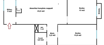 A lakás tulajdoni lap szerint 55 nm-es, 2 szobás. A tulajdonosok a társasháztól megvásároltak további 5 nm-t, mely előszobaként funkcionál.