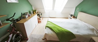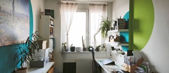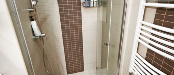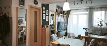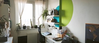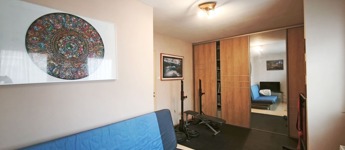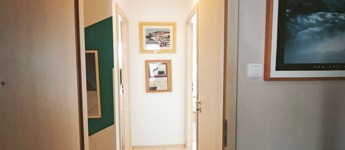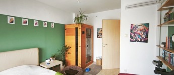 A nappalibból szemben nyílik a 3,7 nm-es loggia ahol kényelmesen lehet kávézni reggelente. Balra a 11 nm-es laminált parkettás félszobába lépünk, ami jelenleg dolgozószobaként funkcionál, de egybe is nyitható a nappalival, ezzel is növelve az amúgy is tágas légies teret. Mellette a 2,8 nm-es zuhanyzós fürdőszoba kapott helyet