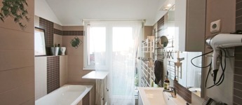 Szemben nyílik a 7 nm-es kádas fürdőszoba innen a 3,3 nm-es teraszra léphetünk ki, ahonnan hatalmas panoráma tárul elénk, ezzel még jobban megnövelve a komfort érzetünket.