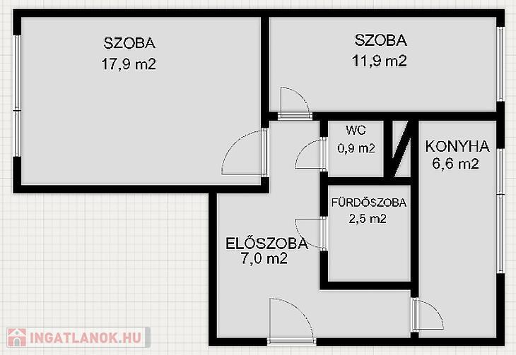 -A szobák külön nyílnak, a fürdő és a WC külön helyiségben található.