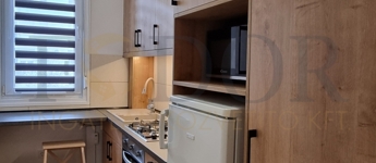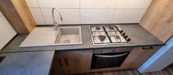 • mennyezetig beépített konyha + reggelizősarok