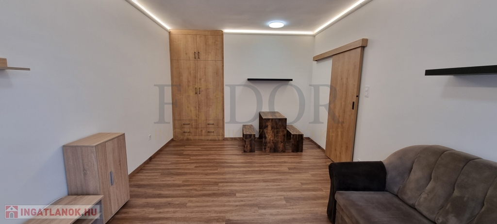 Az 1. emeleten található, nettó 43 m²-es, 1 + 1 félszobás lakás egész nap természetes fényben ragyog.