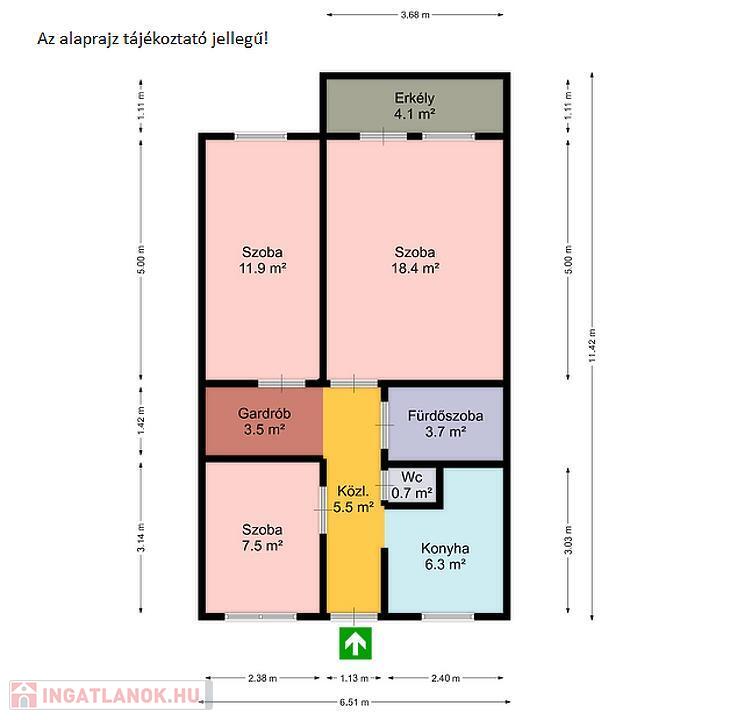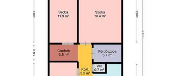 A TÁGAS NAPPALI MELLETT KÉT KÜLÖN NYÍLÓ HÁLÓSZOBA, egy erkély, modern konyha, fürdő és külön WC teszi praktikussá az elrendezést.