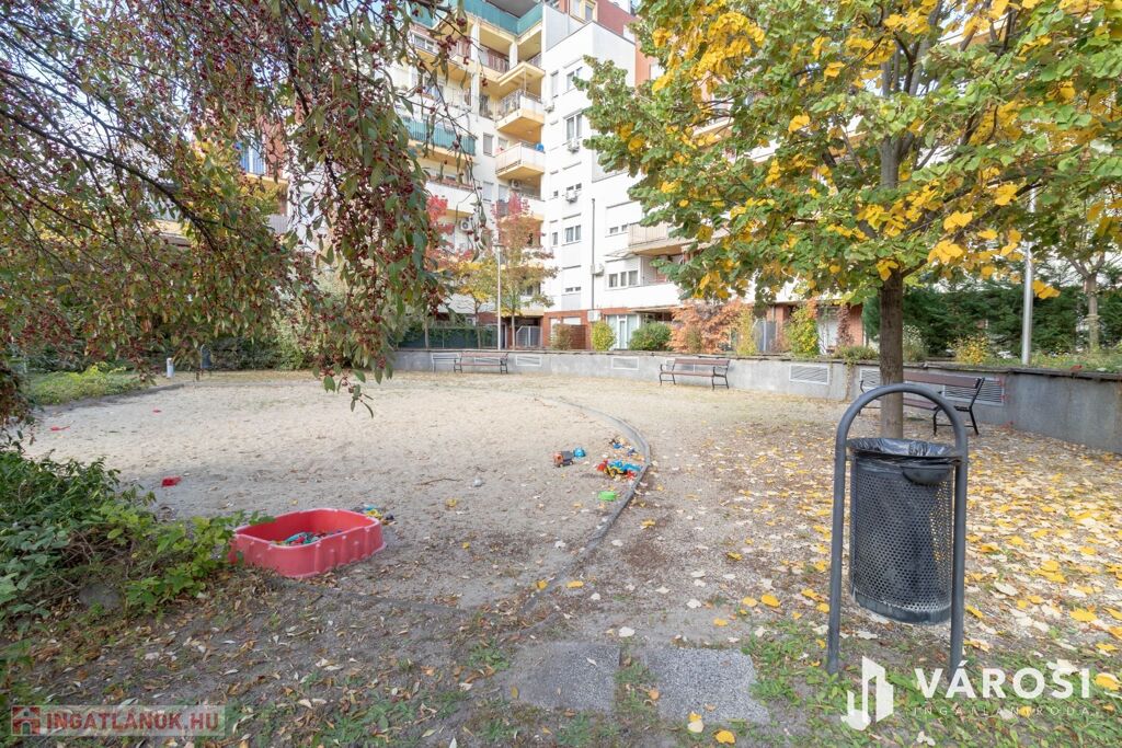 A kertvárosi jelleget a társasház hatalmas, több szintes, zárt, szépen parkosított udvara adja, ahol sétányok, padok és játszótér is várja a lakókat.