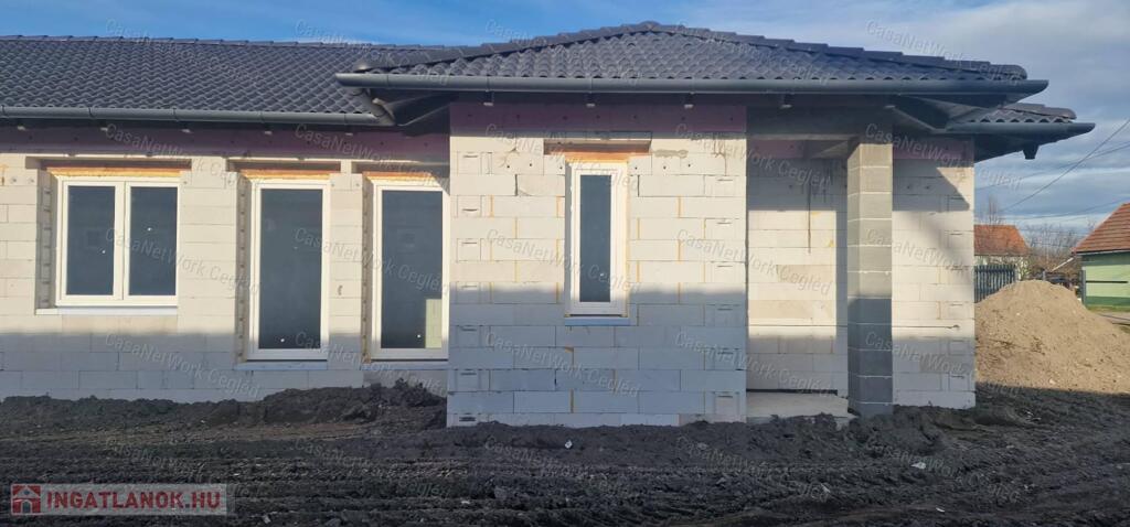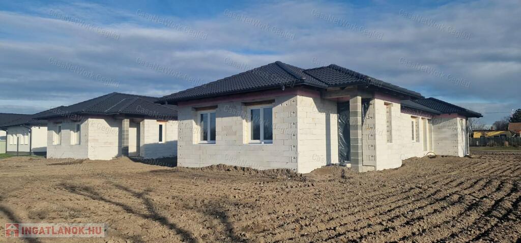 Az ingatlan viablokk falazattal épül, fa gerendás (fenyő) födémmel, a padlástér tárolásra alkalmas. A tetőszerkezet hagyományos ácskötésekkel és csavaros rögzítésekkel készül, fogópárokkal. A belmagasság 2,7 méter. A fűtést kondenzációs gázkazán biztosítja padlófűtéssel az egész házban, a nappaliban egy darab hűtő-fűtő klíma kerül elhelyezésre. A hálószobák laminált padlóval, a többi helyiség járólappal burkolt. Hő- és hangszigetelt műanyag nyílászárók, valamint MDF dekorfóliázott beltéri ajtók kerülnek beépítésre. Parkolás a saját udvarrészen megoldott, két autó számára, a beálló és a járda viacolor térkő burkolattal készül. A két lakás teljesen külön bejárattal, külön udvarrésszel és beállóval rendelkezik. A tervek alapján az ingatlan CSOK+ hitelre alkalmas lesz. Az alaprajzok megtekintése és további információk kizárólag előre egyeztetett időpontban a CasaNetwork ceglédi irodájában lehetséges.