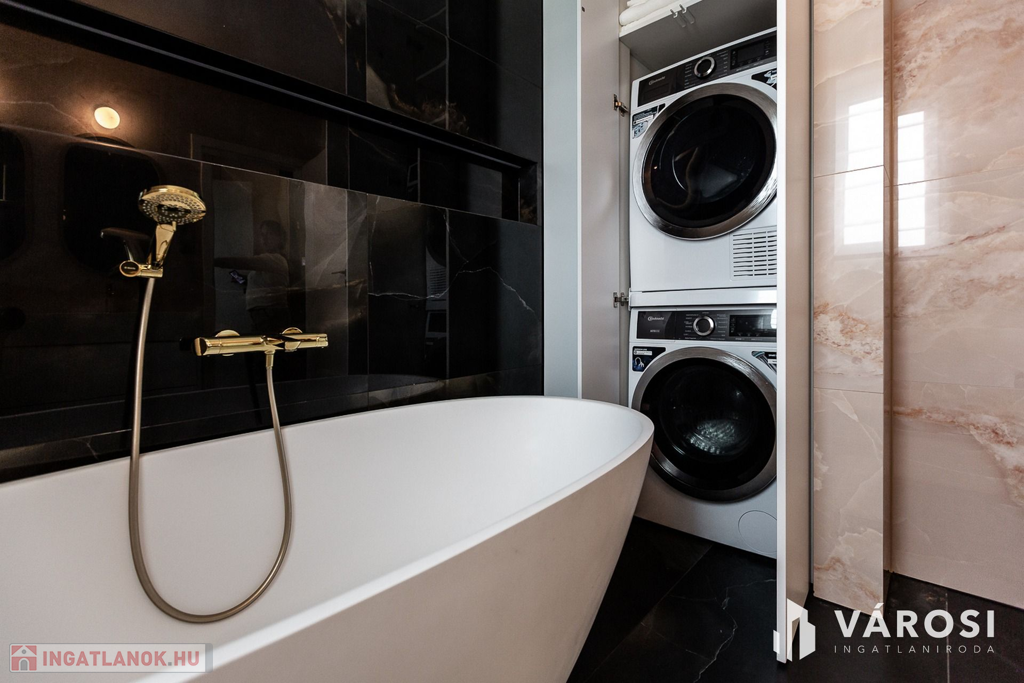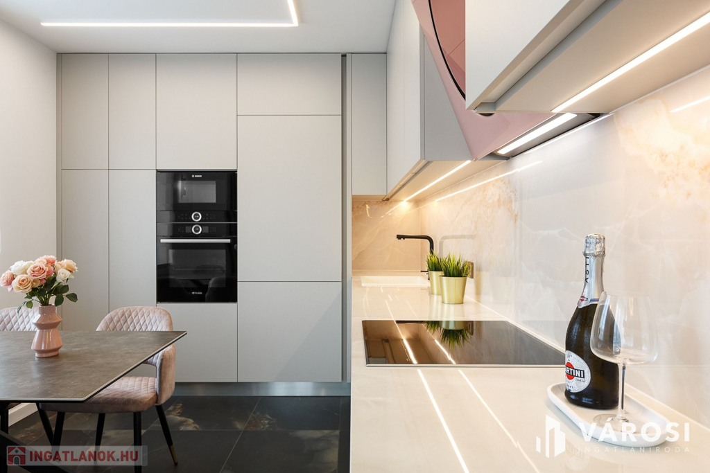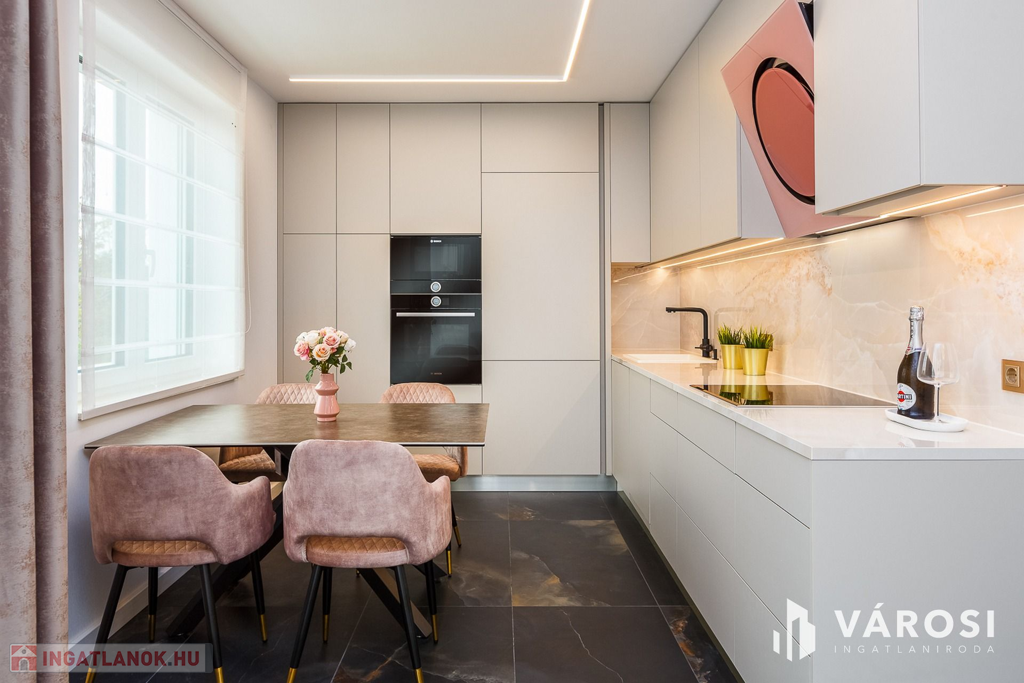 - **Helyiségek:** 2 szoba, 1 nappali, amerikai konyha, fürdőszoba és külön WC a maximális kényelem érdekében.