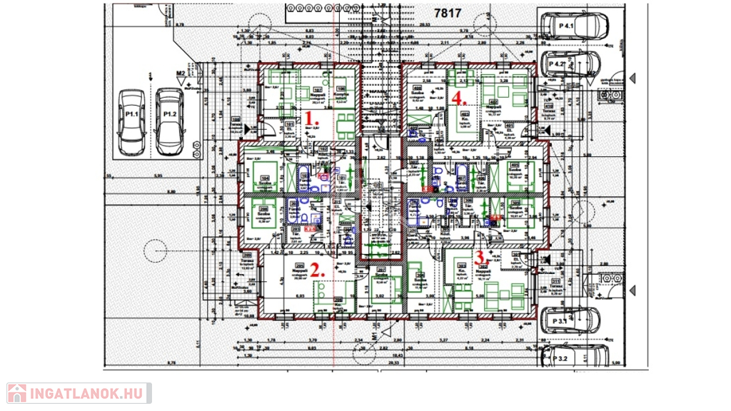 Az emeleti mindegyikéhez tartozik 2 db. saját kültéri beálló is.