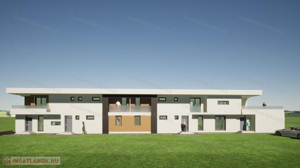 épülő, lapostetős, hőszivattyúval ellátott, négylakásos társasházban