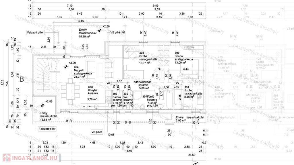 nappali burkolata laminált szalagparketta lesz, a többi helyiség kerámialapos,