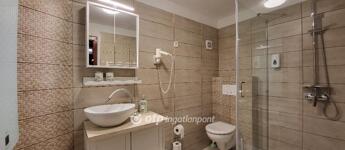 Hévíz, Egregy kertváros, 139 m2 lakás eladó. A három lakásos ingatlan egy 847 m2-es telken, csendes, nyugodt környezetben helyezkedik el, gyönyörű kilátással az Egregyi Nemzeti erdőparkra. A három szintes lakóteret hangulatos erkély egészíti ki, biztosítva a kényelem, a pihenés és feltöltődés számos lehetőségét a mindennapi tevékenységek mellett. Az ingatlan értékét növeli egy zárt garázshely és egy további, fedetlen parkolóhely. Minden szobához tartozik fürdőszoba, így ideális lehetőség akár többgenerációs családoknak is. A fűtést cserépkályha biztosítja cirkó rendszerrel, szeptembertől hőszivattyúval központi fűtés. A földszinti nappaliban infra padlófűtés, mindegyik szobában inverteres klíma. Melegvíz ellátás napkollektorról, áramellátás napelemről. A 3 éve nagyrészt felújított ingatlan értékét tovább növeli egy különleges lehetőség, a hátsó kertben megépített wellness részleg finn szaunával, infra szaunával, jacuzzival, dézsa medencével, sókabinnal, masszázs helyiséggel és egy kerti sütő-főző hellyel kiegészítve, ami igény szerint megvásárolható a lakás mellé. Az ingatlan egyedülálló és kiváló lehetőség nagycsaládoknak, több generációs családoknak állandó lakhatásra, de befektetésként kiadásra is kiváló lehetőség Hévíz nemzetközileg is ismert tófürdőjének köszönhetően, ami csak 2 km távolságra van a háztól, és akár egy fél órás sétával is elérhető. Az ingatlan mindegyik lakása eladó, illetve egyben is megvásárolható. Otthon Start Hitelprogram. Bővebb információért keressen telefonon!