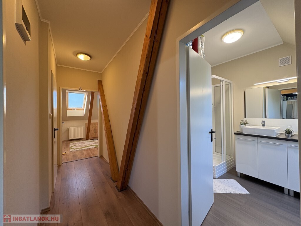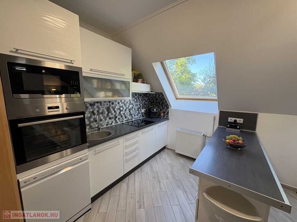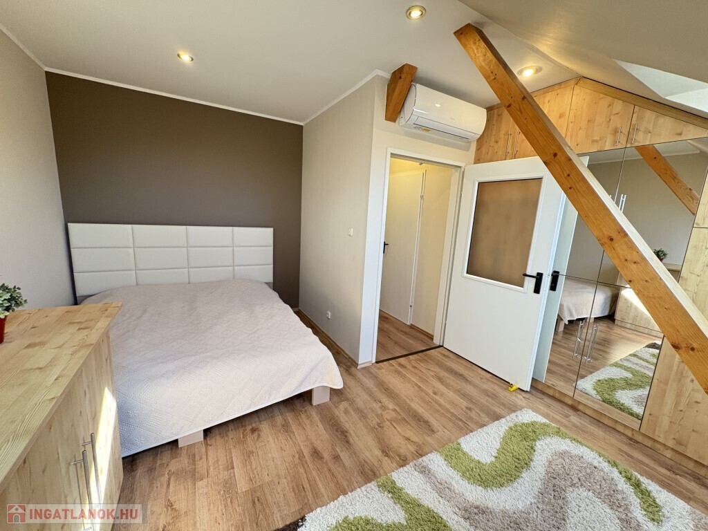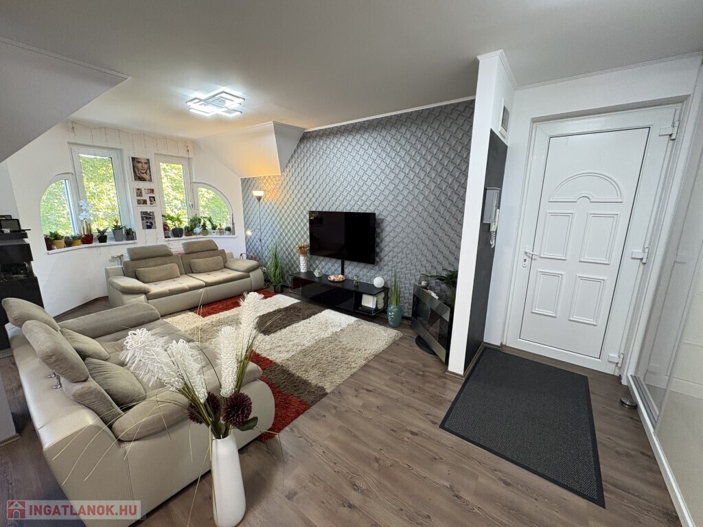Kaposváron a belvárosban, a Fő utcában - közvetlenül a kórház közelében - található 1999-ben épült, kifejezetten rendezett társasház 3. emeletén lévő 121 m2-es, ideális elosztású, nagyon jó állapotú két szintes lakás eladó. A lakás alsó szintjén előszoba-nappali-étkező-konyha, kamra, 2 szoba - közös erkéllyel, fürdőszoba, wc-kézmosó helyiségek találhatóak. A felső szinten előszoba-közlekedő, 2 szoba, fürdőszoba, wc kerültek kialakításra. A lakás rezsi költsége nagyon kedvező, a fűtést és a melegvízet új Immergas kombi gázkazán szolgáltatja, a nappaliban és a tetőtéri 2 szobában 1-1 új Gree légkondícionálót szereltetett fel a tulajdonos. A társasháznak nagyon szép, rendezett udvara van, ahová 1 személyautóval ingyenesen tud parkolni a lakás tulajdonosa.