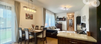 A nagy üvegfelületeknek köszönhetően a lakás rendkívül világos,és több szobából közvetlen kijárat vezet a saját használatú, gondozott kertbe.