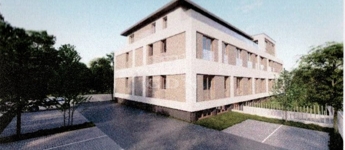 A társasházban 31 db lakás épül 27 és 54 nm között három szinten,