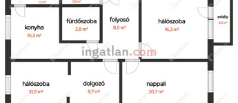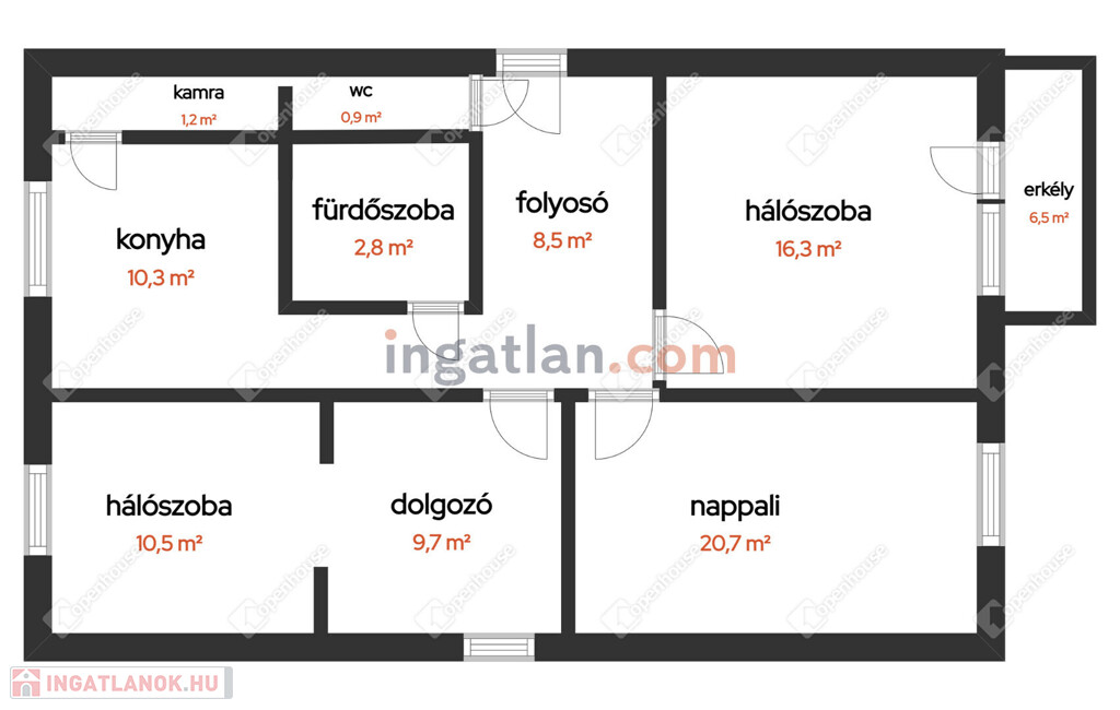 - nappali + 3 különálló hálószoba (de ha úgy tetszik akkor 4 külön szobát is kialakíthatsz