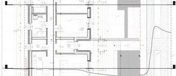 Az épület alkalmazkodva a domborzati viszonyokhoz, úgy lett kialakítva, hogy a két lakás félig fedésben van és tükörképei egymásnak.
