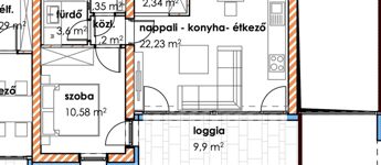A 1 db amerikai konyhás nappalival, 1db hálószobával, 1 db fürdőszobával, közlekedővel, loggiával rendelkezik.