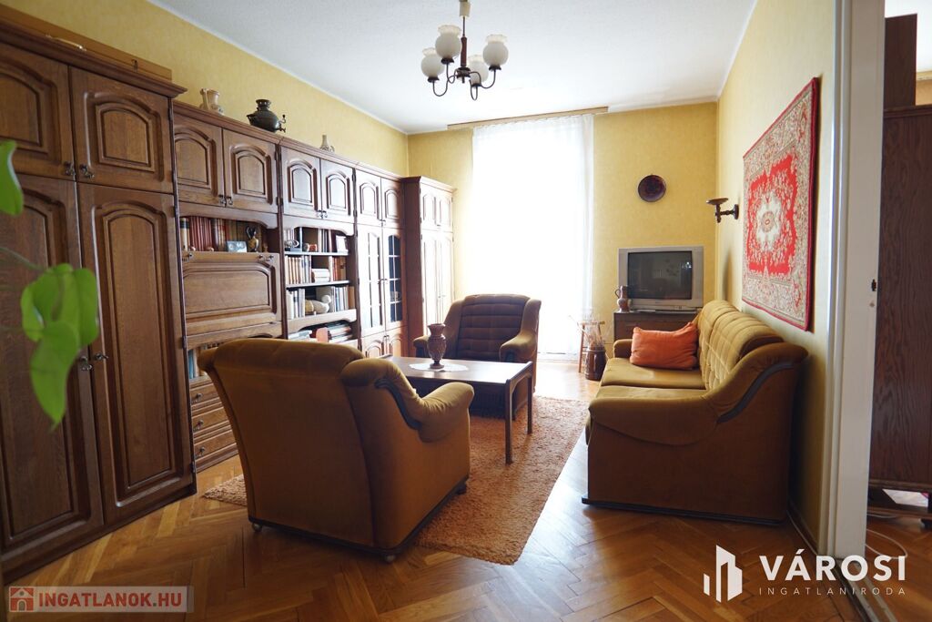 Nagykanizsa belvárosában, a Zrínyi utcában vált eladóvá, ez az átlagos állapotú, 62m2-es, zárt udvarban található, társasházi lakás. Az ingatlanban a tulajdonosok korábban kicserélték az összes homlokzati nyílászárót, műanyag profilszerkezetűre, valamint a főbejárati ajtó is új lett. Ezen munkálatokon kívül nem történt további felújítás a belső lakrészben.
