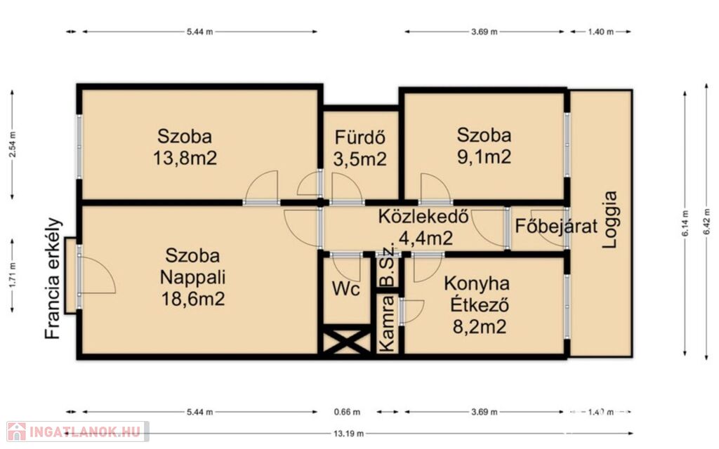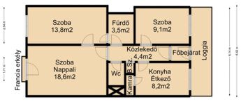 Az ingatlan szélső lakás ezért az előtte található Loggia, saját használatú.