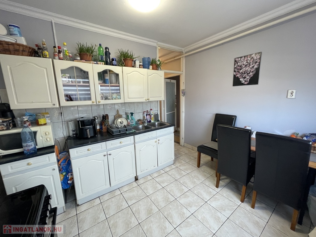 Nyíregyháza Örökösföld Család utcában eladó egy 53 nm-es, erkélyes, 2 szobás, nagy konyhás, külön fürdő és wc. Járólap és laminált parketta burkolattal, részben műanyag nyílászárókkal, mért távhő fűtéssel, hűtő-fűtő klímával, acél biztonsági bejárati ajtóval, erkélyes, jó állapotú lakás, tárolóval eladó. Energetikai besorolás: GG