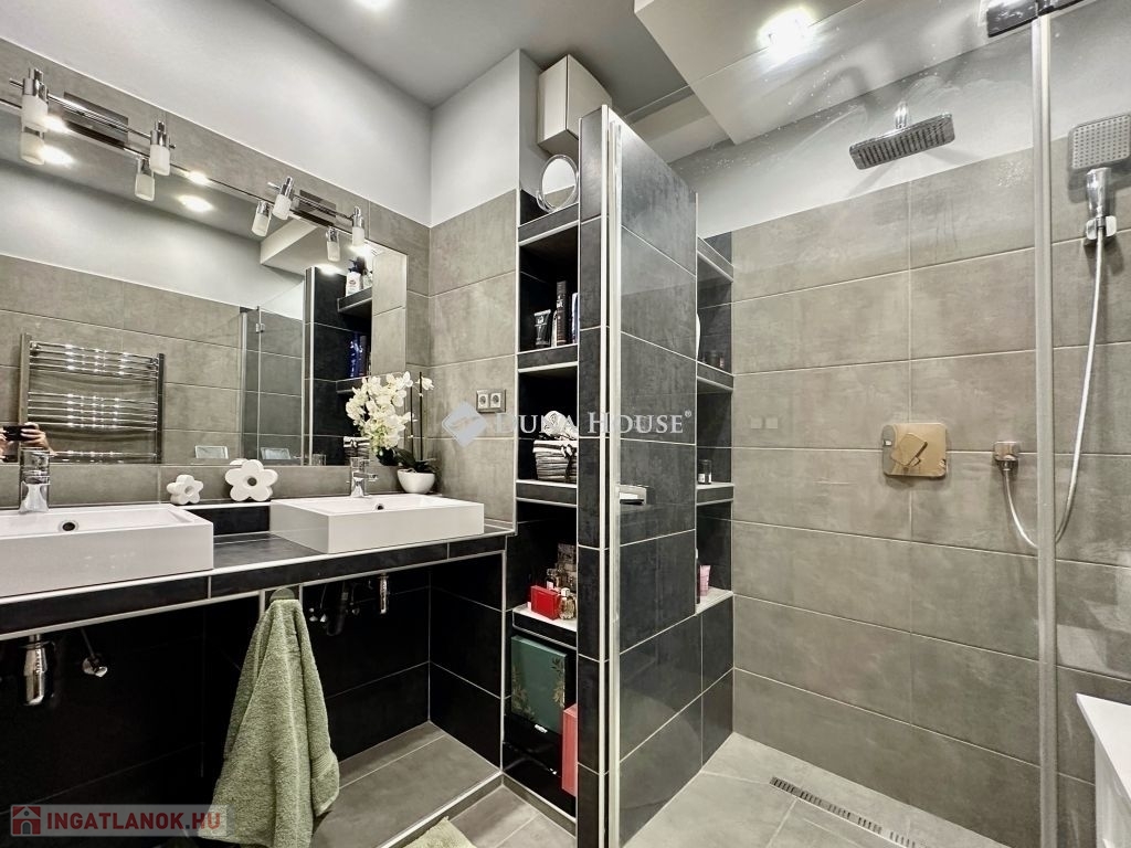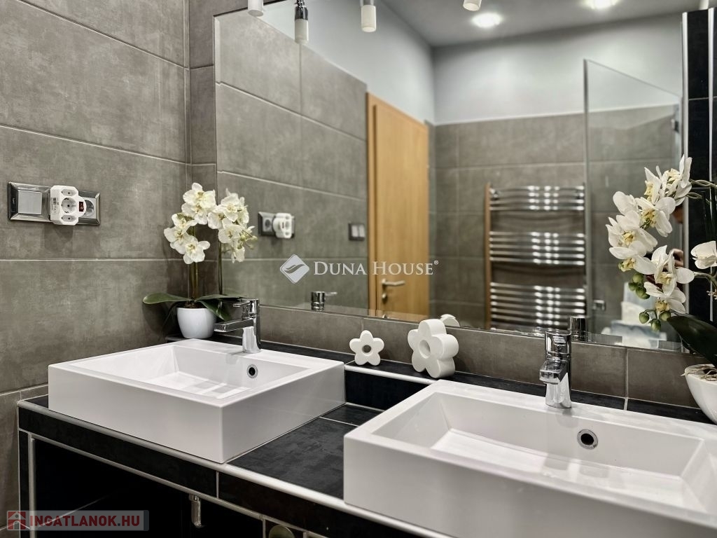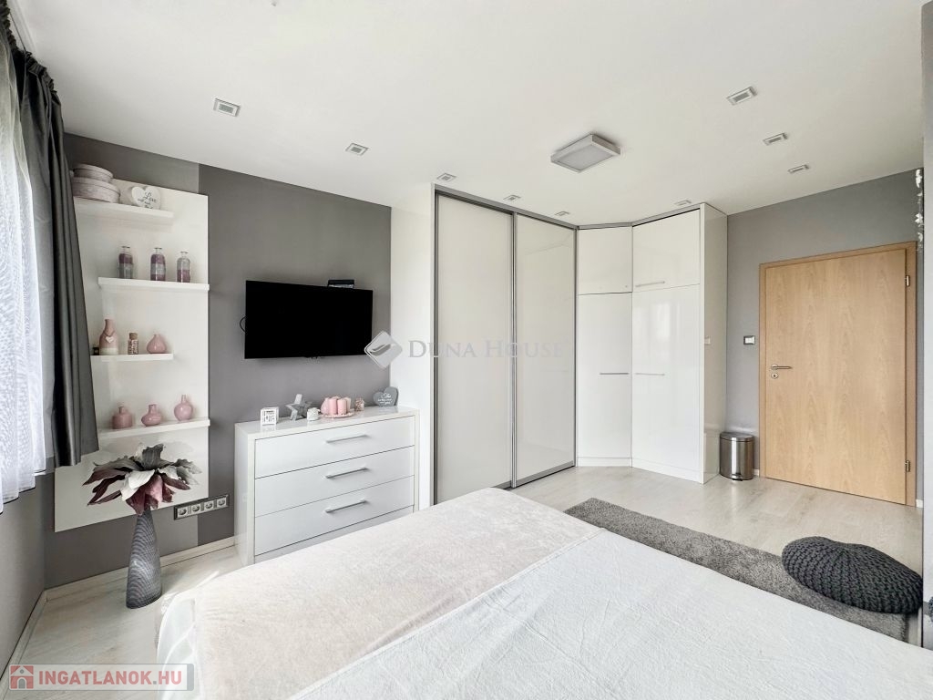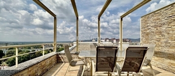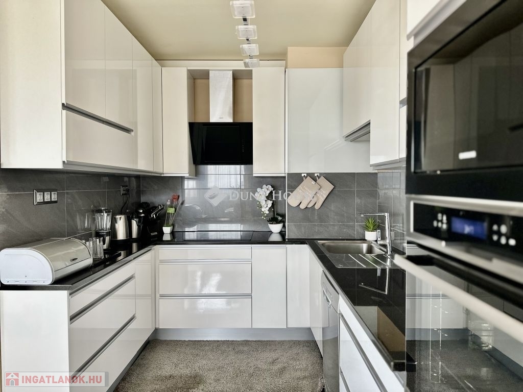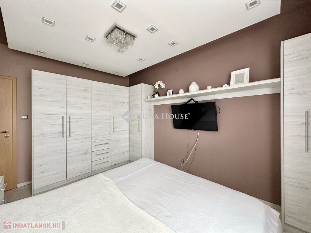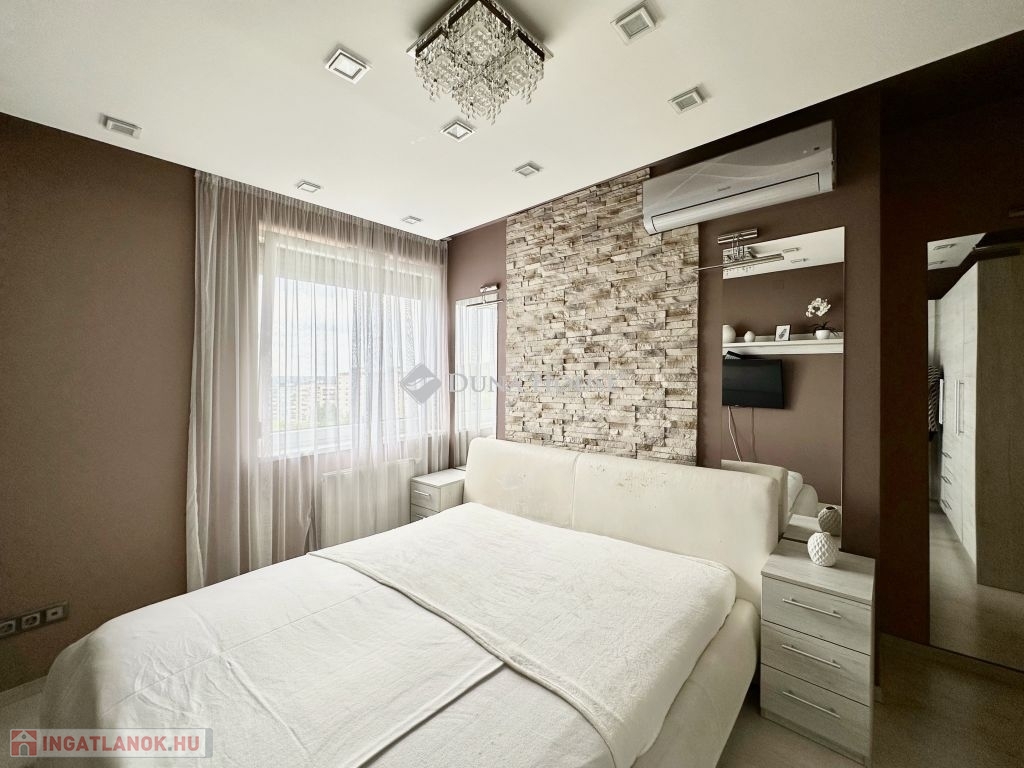 Eladó panorámás, modern lakás tetőterasszal Fellbach lakópark, PécsExkluzív lehetőség a közkedvelt Fellbach lakóparkban: eladásra kínálunk egy kiváló elrendezésű, világos, modern kialakítású téglalakást, páratlan kilátással a Mecsekre. Az ingatlan egy lifttel ellátott társasház legfelső szintjén található, igényes, rendezett környezetben.Főbb jellemzők:Tágas amerikai konyhás nappaliNagyméretű tetőterasz elektromos árnyékolóvalKét külön nyíló hálószobaFürdőszoba + külön WCMinden helyiség klimatizáltSaját, zárható tárolóTávfűtés egyedi mérővelParkolás közvetlenül az épület előtt, mindkét irányból megközelíthetőenA lakás modern burkolatokkal, stílusos belsőépítészeti megoldásokkal, kiváló természetes fényviszonyokkal rendelkezik. Ideális választás azok számára, akik igényes, jól megközelíthető, nyugodt környezetben keresnek prémium ingatlant. További információért és megtekintésért keressen bizalommal!