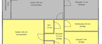 Helyiségei: 2 szoba, 1 szoba, konyha, kamra, előszoba, fürdőszoba, külön nyíló W.C., beépített erkély.