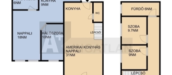 - amerikai konyhás nappali, erkély, toalett, fent két szoba és fürdőszoba