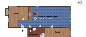 elosztás: amerikai konyhás nappali + 2 hálószoba