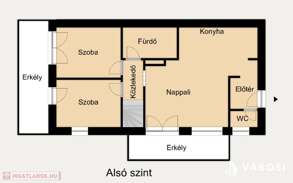 Elhelyezkedés: első emelet, belső kétszintes kialakítás