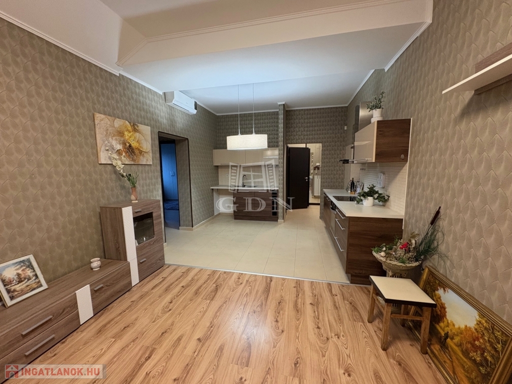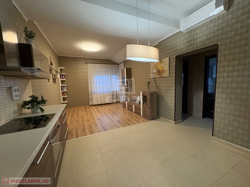 Veresegyház Ligetek városrészén kínálunk eladásra, tégla építésű társasházban, egy emeleti, nappali+ 2 hálószobás, dupla komfortos, nagy teraszos, igényesen felújított lakást, praktikus elrendezéssel, tágas terekkel. Konyhája gépesített, a nyári melegben két klíma növeli a komfortérzetet, a nyílászárók redőnnyel, szúnyoghálóval felszereltek. A lépcsőház tiszta, rendezett, jó lakóközösséggel. A ház mögött közös kert található, gyermekek részére homokozóval. A lakáshoz tartozik egy saját, zárt udvari beálló és egy tároló. Ideális választás ha vágyik egy igényes otthonra, kertvárosi hangulatra. Közelben található bevásárlási lehetőség, iskola, óvoda, buszmegálló.