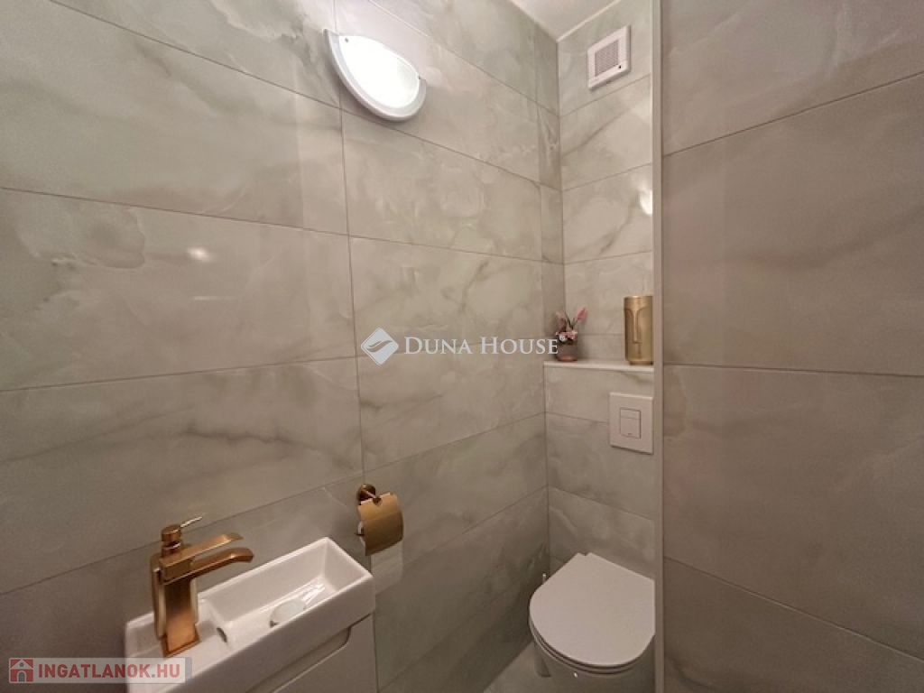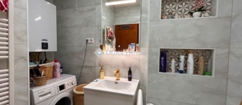 Igényesen felújított fürdőszoba, mosdó, konyha és étkező