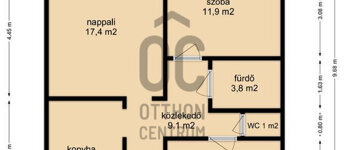 - nappali + 2 szoba