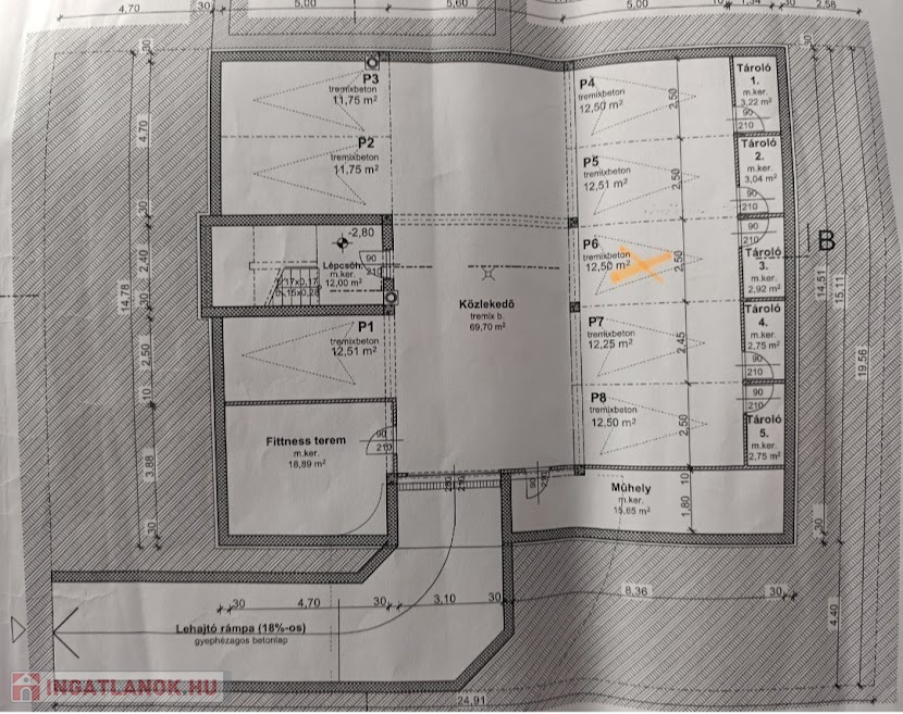 Eladó egy nyolclakásos társasház teremgarázsában egy nagyobb beálló/tároló.