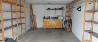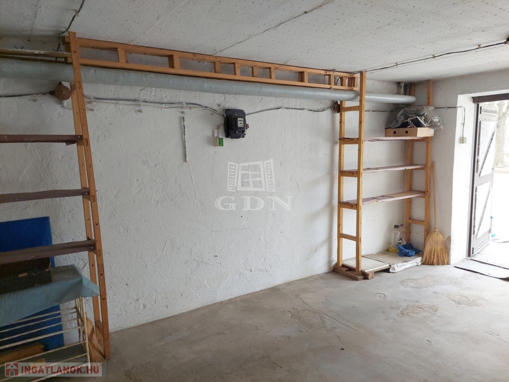 A garázs állapota jó, akár kisebb üzlethelyiség vagy iroda is kialakítható belőle. Az oldalfalaknál polcozás lett kialakítva, így tárolóként is hasznosítható.